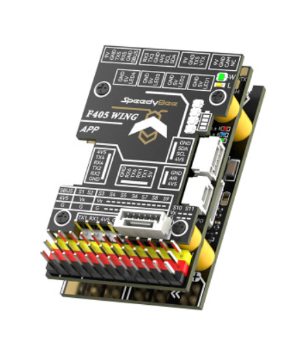 SpeedyBee F405 Wing APP — полётный контроллер для крыльев, планеров и VTOL с поддержкой мобильного приложения SpeedyBee для настройки по Wi-Fi или Bluetooth. Оснащён процессором STM32F405 и встроенным OSD, подходит для ArduPilot и INAV.